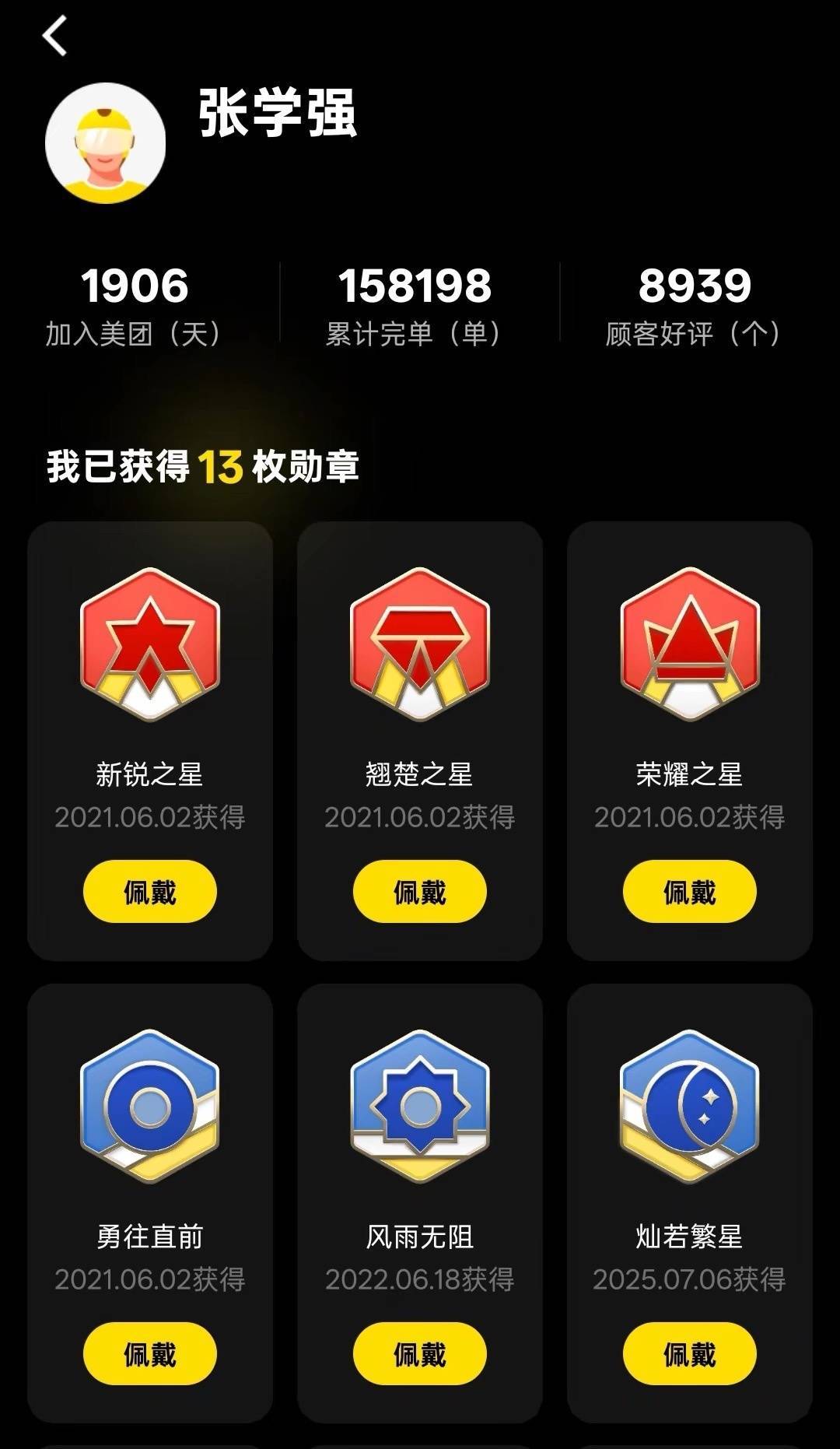 张学强累计完成158198单。图/受访者供图